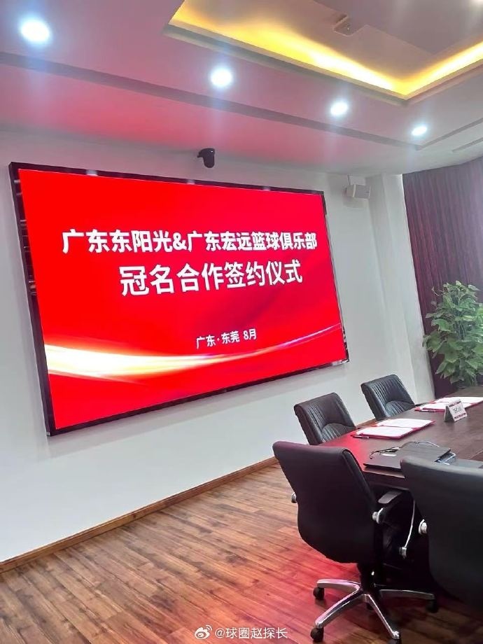 我们的报道人员@球圈赵探长分享了一张会议室内的照片,给大家带来了一个令人兴奋的消息。据他的报道,广东男篮的球衣背后将会出现一个耳目一新的名字——广东东阳光冠名!这不仅意味着球队的形象将会焕然一新,更重要的是,这将给广东队的运营带来更多的灵活性。只能说,广东男篮真是既锋芒毕露又机智过人啊!