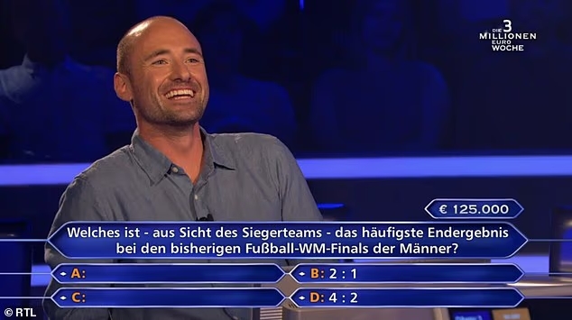 在德国版的《谁想成为百万富翁》节目中,一个令人心痛的场景上演。参赛者马克·奥芬巴赫尔在勇闯关卡的过程中,积累了可观的奖金,然而在最后一个问题面前,却遭遇了挫折。他被问到:“男足世界杯决赛中,出现最多的比分是多少?选择有1-0、2-1、3-1或4-2。”尽管这个问题关联到世界足坛的最高舞台,奥芬巴赫尔却不太熟悉足球,显得有些踌躇。