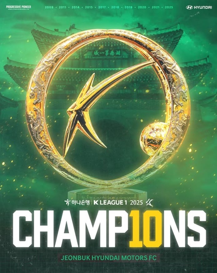 10月18日,K1联赛第33轮的较量中,全北现代在主场以2-0战胜水原FC,提前五轮锁定本赛季的联赛冠军。这一胜利不仅让全北现代的积分达到71分,也标志着他们历史上第十次夺得联赛桂冠。