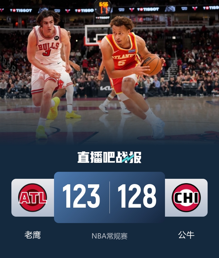 在10月28日的NBA常规赛中,公牛队在主场迎战老鹰队,展开了一场精彩纷呈的对决。公牛队在赛季初以2胜0负的佳绩飘扬而来,而老鹰队则以1胜2负的成绩,渴望在客场反弹。