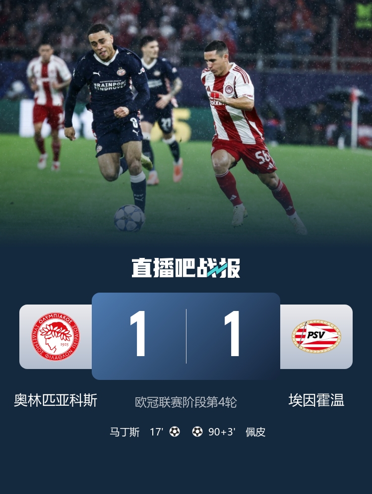 下半场的比赛故事依然扑朔迷离。第47分钟,埃因霍温试图展开攻势,蒂尔的一脚精彩传球传至禁区,可惜佩里西奇的射门略显偏失。最终,这场比赛充满戏剧性的对决以平局收场,奥林匹亚科斯未能获得期待中的欧冠首胜,而埃因霍温则在绝境中实现了战术的逆转。调动整个场馆观众情绪的精彩对决,令人难忘,展现了足球赛场上无处不在的悬念与激情。