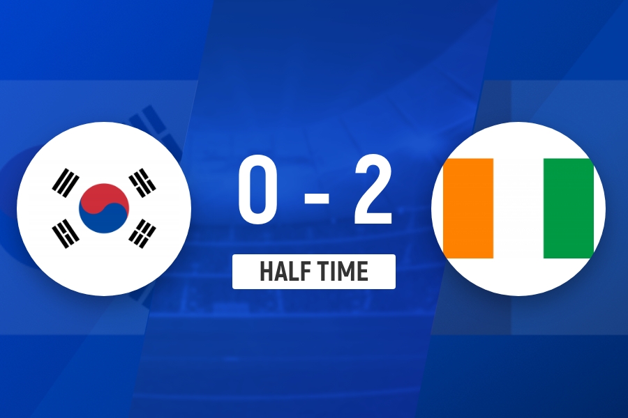 补时阶段,第一部分上半场比赛终于在紧张的气氛中结束,韩国0-2暂时落后于科特迪瓦。